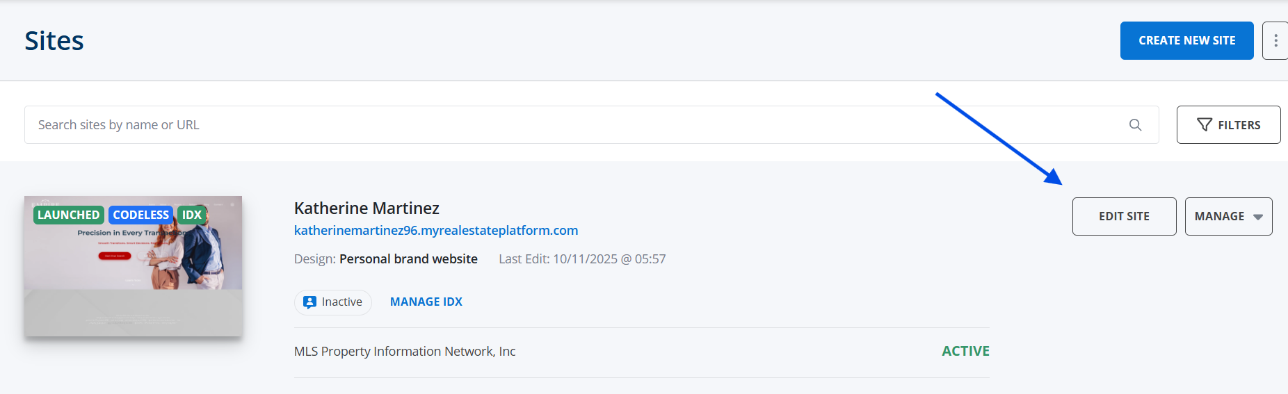 Once you’re logged in, you will be redirected to your dashboard then click on Edit Site: