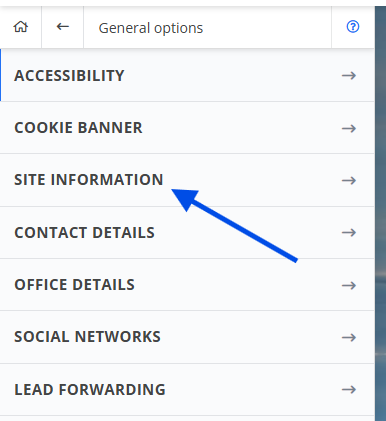Under General Option, click Site Information: